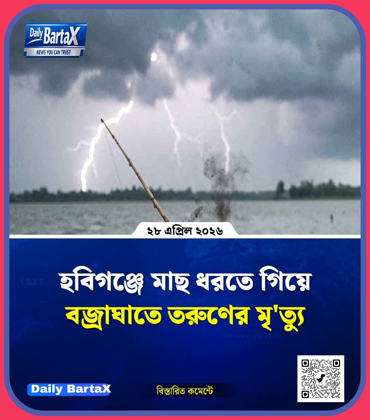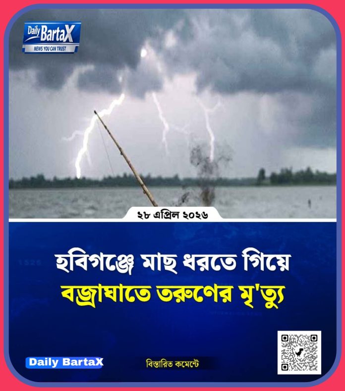 হবিগঞ্জের চুনারুঘাট উপজেলায় মাছ ধরতে গিয়ে বজ্রপাতে মোবিন মিয়া (১৮) নামে এক কিশোরের মৃত্যু হয়েছে।